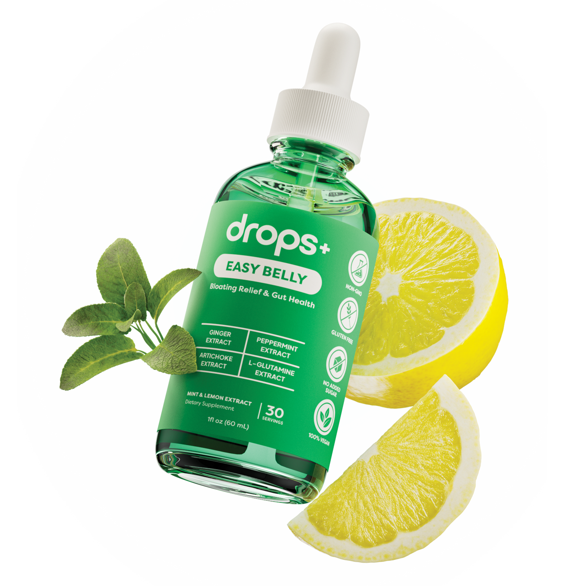 Our Easy Belly drops support comfortable, healthy digestion. They help reduce bloating and promote gut balance naturally. The refreshing cool mint and lemon zest flavor is light and soothing. Feel comfortable and confident after every meal.