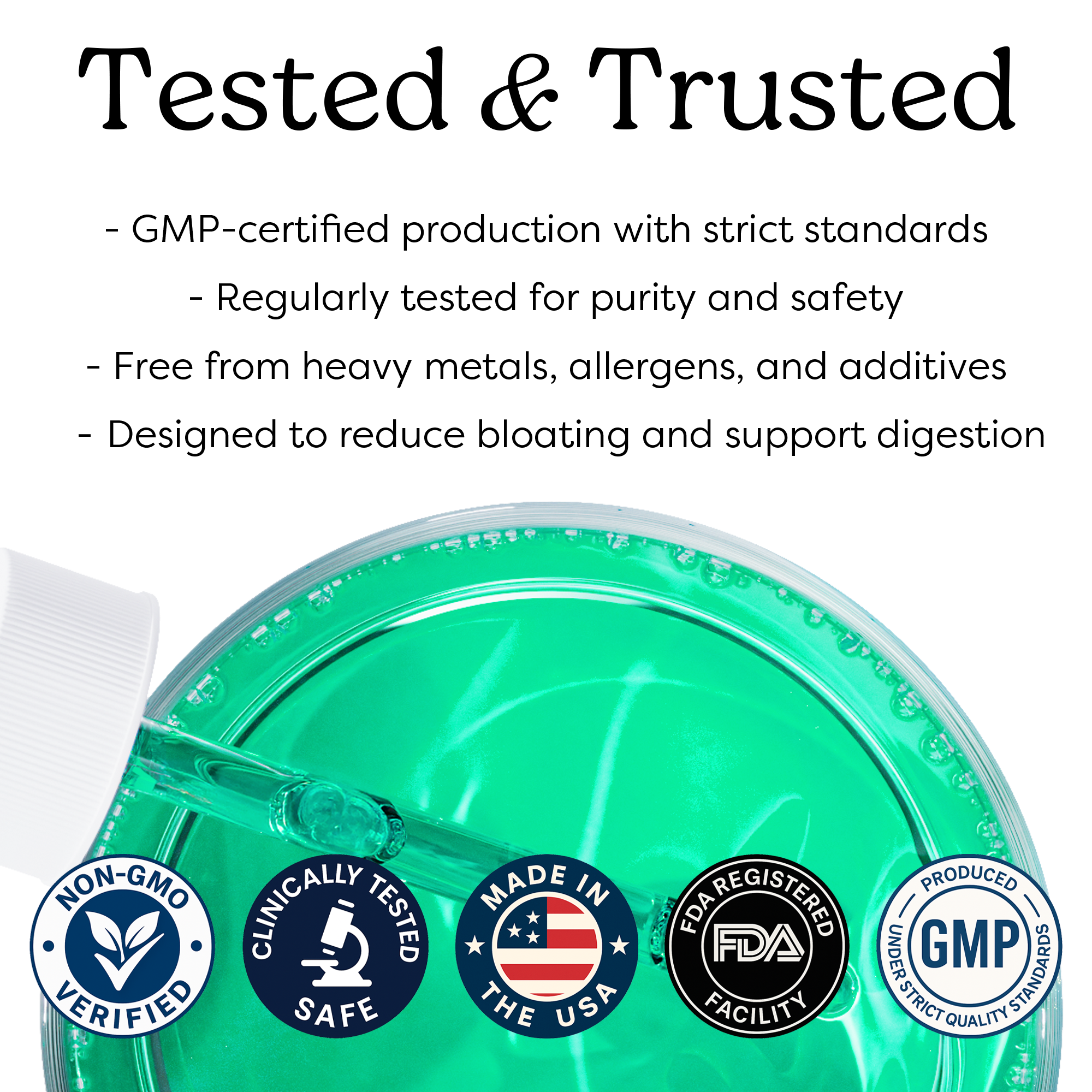 With daily use of 2ml, your gut stays happy. No restrictive diets needed to feel comfortable.